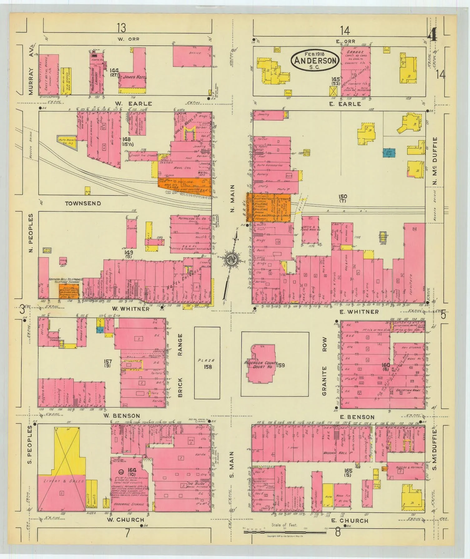 Map of Historic Downtown Anderson; The Grand 1891 is 212 and 214 on the map.